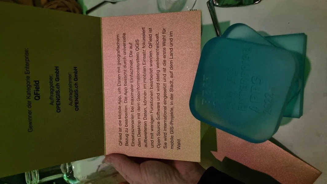 What a night it was. The “Best of Swiss Apps Awards” took place in Zurich yesterday, November 2, 2022. We were also nominated with QField. And in the enterprise category, the app was so convincing, that it was awarded the highest possible price. So it brought the award “Best of Swiss Enterprise App” home to Graubünden. And as cherry on the cake: QField was also nominated as finalist in the UX/UI category!
