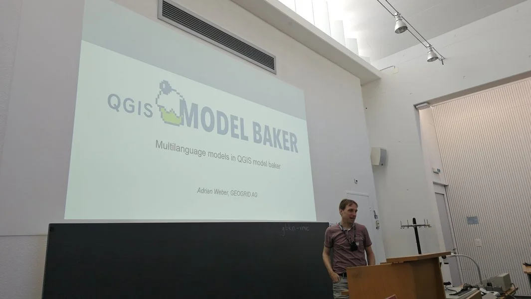 • The Model Baker plugin, to which we contribute heavily, was showcased with its new multilanguage support for QGIS models — a significant step forward for the Swiss context and its multilingual projects.