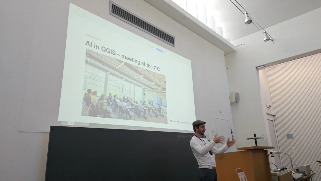 Later in the morning, our CTO Mathias Kuhn gave a compelling talk on Machine Learning and AI in QGIS, showing real-world use cases and technical innovations that bridge geospatial workflows with intelligent automation.