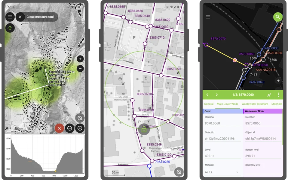 QField’s main new feature of this 2.5 release cycle is its brand new elevation profiling functionality which has been added to the measuring tool. Users are now able to dynamically build and analyze elevation profiles wherever they are - in the field or on their desktop - by simply drawing paths onto their maps and projects.