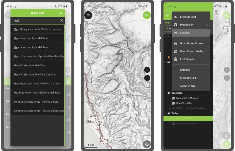 Finally, feature lists throughout QField are now sorted. By default, it will sort by the display field or expression defined for each vector layer, unless an advanced sorting has been defined in a given vector layer’s attribute table. It makes browsing through lists feel that much more natural.