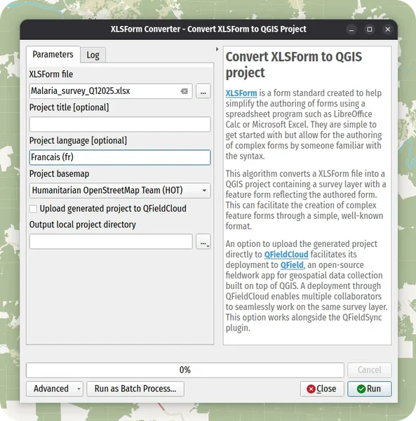 Pro tip: Since the converter is an algorithm, you can use it to build complex, model-driven survey projects via the QGIS Processing Modeler. You can also run conversions in headless environments using qgis_process. The possibilities are endless!