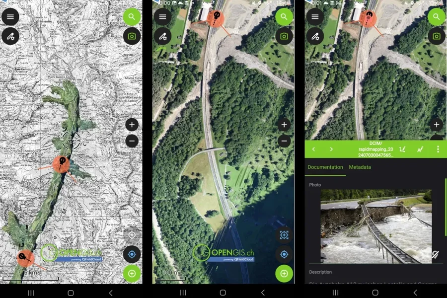And then it became reality: In the summer of 2024, heavy rains caused severe flooding in Switzerland and, suddenly, QField became a vital tool for supporting emergency response through data surveys and photo documentation.